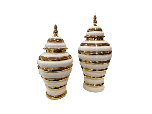 İkili Seramik Yuvarlak Gold Detaylı Vazo